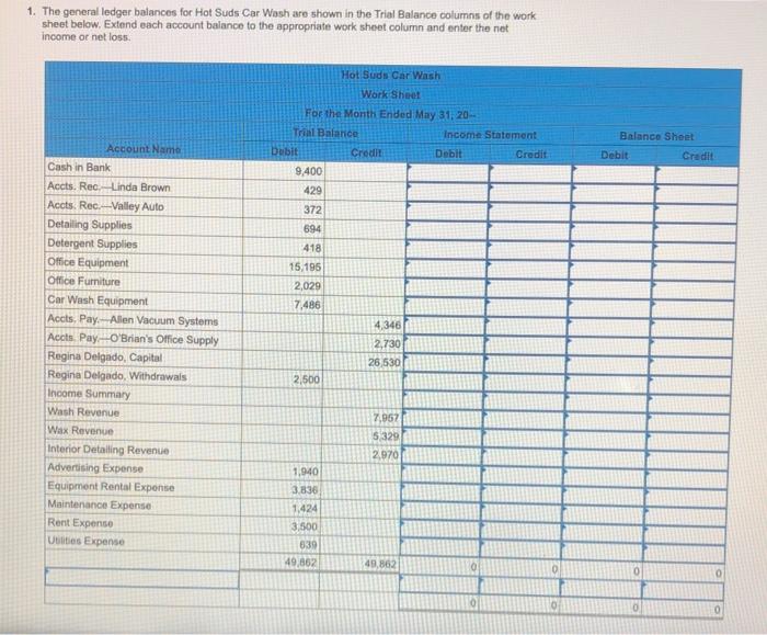 Solved 1 The General Ledger Balances For Hot Suds Car Wash Chegg Com